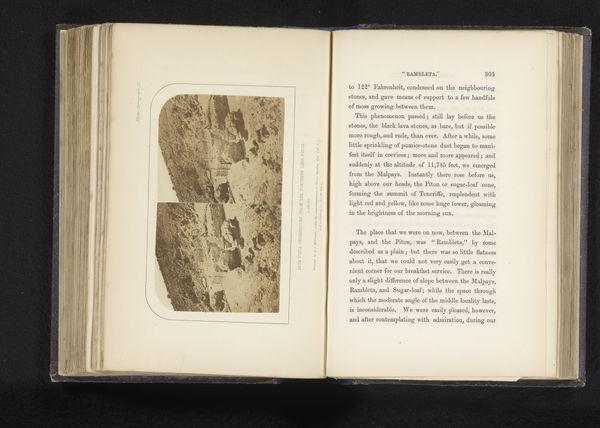 Curator: This gelatin silver print, entitled "Gezicht op de krater bij de berg Guajara", was captured between 1856 and 1858 by Charles Piazzi Smyth. Looking at it now, one might immediately notice the seemingly lunar-like desolation. Editor: Absolutely. The stark, monochrome tones, combined with the sharp, angular forms of the volcanic rock, evoke a sense of profound solitude and geological drama. The high contrast gives it a distinctly raw, almost primordial feel. Curator: The image documents the landscape, yet it's essential to recognize that Piazzi Smyth made these photographs during an expedition to Tenerife aimed at proving the suitability of high-altitude locations for astronomical observation. The social context surrounding this expedition and Smyth’s goals are critical. We might consider his biases as a Victorian scientist as shaping this depiction of the landscape as an “objective” subject for scientific study. Editor: True, but also let's not diminish the way Smyth harnesses the materiality of gelatin silver to create a meticulous study in texture and form. The layering of tones from the white of the highlights to the velvety shadows is particularly effective in rendering the three-dimensional volume of the volcanic structures. The artist's commitment to symmetry through the doubled print amplifies a scientific attitude as well as offers a novel and affecting stereoscopic experience for the viewer. Curator: I'd also emphasize how landscapes in the 19th century, particularly those depicting remote or seemingly untouched terrains, were often utilized to promote ideologies of expansion and domination. Consider how representations of nature might support colonialism or the dispossession of Indigenous peoples. While we have no indigenous subjects present in this frame, the romanticisation of untouched landscapes becomes an interesting area for discussion. Editor: Fair enough, but focusing solely on historical or political contexts can eclipse our capacity to see it formally. Before you can deconstruct any ideological framework, it’s essential to apprehend the picture's intrinsic components. Without that, our deconstruction risks becoming superficial, reducing the artwork to a mere vehicle for extraneous arguments. Curator: Well said. Perhaps we find ourselves suspended in a productive tension, both acknowledging the artifice and considering its impact on historical discourse. Editor: Indeed, each approach—contextual and formal—lends something to a greater, richer understanding.