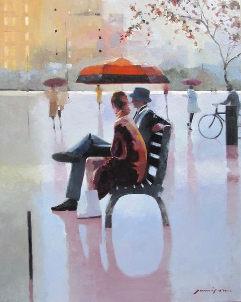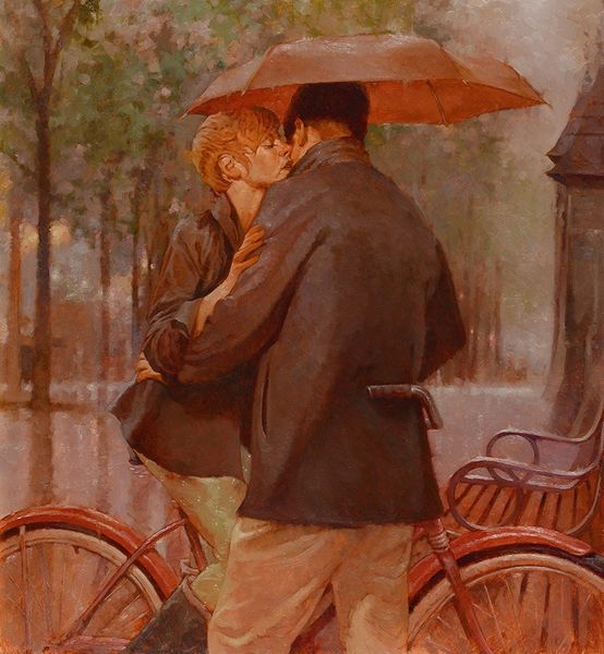 Haddon Hubbard Sundblom created this painting, titled *A Talk in the Park*, which captures a moment of everyday life. Sundblom was known for his commercial illustrations and this work reflects a similar approach, depicting an ordinary scene with a focus on realism and detail. The painting invites us to think about the social dynamics present. We see a man and a woman sitting on a park bench, engaged in conversation. Their attire suggests a working-class background, and their interaction might reflect the gender roles and social expectations of the time. What are they talking about? Is it idle chatter, or something more profound? The setting, a public park, is a space where different classes and social groups converge. It also evokes questions about privacy, community, and the ways in which we connect with others. Sundblom's attention to detail in rendering their clothing and expressions adds a layer of emotional complexity to the scene.