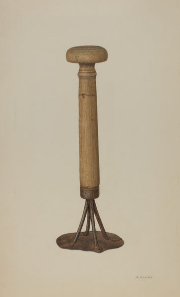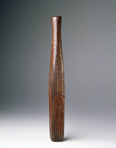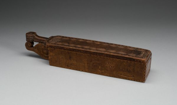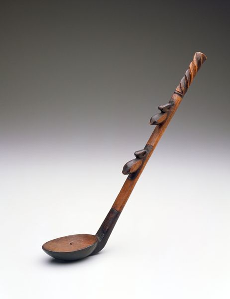 Curator: Here we have an object identified as a “Spoon”, originating from the Lozi people, and dating to around the 19th century. It's currently part of the collection here at the Minneapolis Institute of Art. Editor: Oh, my! It feels so personal, doesn't it? Raw, like a forgotten lullaby. That little bird figure perched on the handle… it looks as if it's guarding secrets, perched right there between the bowl of nourishment and the steady hand. Curator: The simplicity of its form, particularly the integration of avian imagery with a commonplace tool, is quite striking. We see a distinct emphasis on the manipulation of wood, revealing tool marks that narrate the process of creation. Editor: True, you can see how it’s shaped – it looks very elemental. I mean, can't you imagine someone patiently carving this by the firelight? Makes me wonder about the stories this spoon could tell… Who ate from it? Was it part of some ritual? Curator: It prompts us to think about function meeting symbolism. The Lozi are known for their complex social structure and craftsmanship. The spoon’s very existence suggests daily life intertwined with deeper meanings. Editor: The grain of the wood alone tells a tale of resilience. Imagine scooping up life itself with it, with every meal connecting someone back to their roots, you know? Curator: And the subtle asymmetry only adds to its inherent interest as an example of ethnographic artistry. Editor: Right! It is imperfect, which makes it sing. Art doesn’t need to be polished. Thank you, little Lozi spoon, for reminding us about soul and sustenance. Curator: Yes, indeed. A compelling look into how ordinary objects carry immense cultural weight.