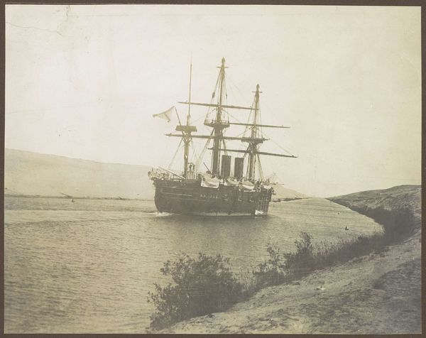 Editor: This albumen print by James Valentine, titled "Zeegezicht met schepen (At the tail of the bank, Greenock)" was created sometime between 1865 and 1890. It gives off such an interesting, almost ethereal feeling, a snapshot into another time with these ships. What aspects of its context and creation strike you? Curator: Immediately, I'm drawn to the albumen print process itself. It’s not just a picture, it's about labor. Think about the work involved in coating the paper with egg whites, sensitizing it, exposing it… this material transformation speaks volumes. What can this tell us about photography as both art and craft in this period? Editor: So, you're thinking about the socio-economic aspects of image creation, beyond just the composition of the boats? Curator: Absolutely. Who was employed? How readily available were these materials? Consider the trade routes that facilitated the distribution of albumen paper, potentially made using eggs from across the empire. It wasn’t simply clicking a button. Every print carries that weight, both literally and metaphorically. Are the subjects just ships or something else? Editor: Something else like...power? And global trade? These boats as objects become evidence of a globalized system, even in this seemingly peaceful image. Curator: Exactly. The "how" influences our perception of the "what". Understanding the labor and materiality demystifies the romantic notion of art and grounds it in a concrete social reality. What initially felt ethereal now gains sharper edges. Editor: This perspective definitely offers a more grounded, almost gritty way of looking at art. Thank you! Curator: My pleasure. Seeing art as a product of its time, rooted in material conditions, changes everything, doesn't it?