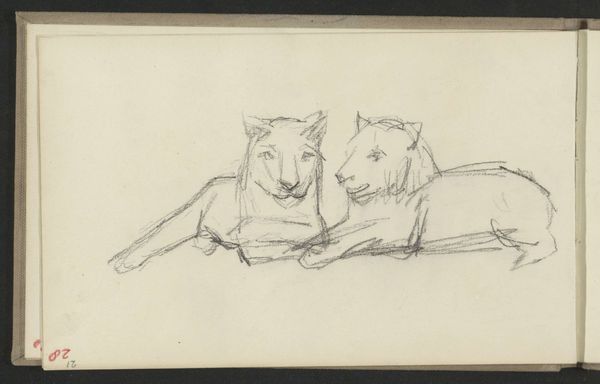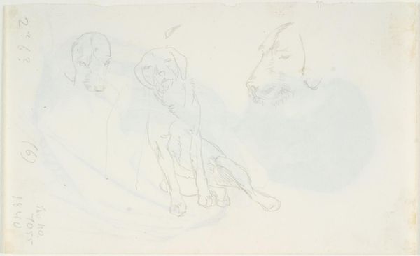 Curator: Jozef Israëls created these Studies van een Hond – Studies of a Dog – sometime between 1834 and 1911. It’s a pencil drawing on paper, currently residing here at the Rijksmuseum. Editor: Immediately, I feel a sense of intimacy. The fleeting quality of the sketch, that tender, searching line—it captures a sort of vulnerability, not just in the dog itself but also within the artist's hand. Almost like eavesdropping on a private moment of observation. Curator: Absolutely. Animal studies often act as windows into deeper, more primal aspects of human nature. Dogs, of course, are historically powerful symbols of loyalty, guardianship, and the wild spirit domesticated. Israëls, though, avoids romanticizing; instead, he distills the canine form to its raw essence. Notice how economical his marks are, yet how powerfully they suggest form and movement. Editor: It's interesting you mention movement. There's a lovely dynamism in that upper study—almost a premonition of Eadweard Muybridge’s motion studies decades later. It makes me consider all of the hidden layers buried beneath a deceptively plain surface. It gives me pause to notice these gentle graphite lines suggesting fur, muscle, bone. They bring me to the soul, perhaps. Curator: Indeed. Israëls worked within a Realist tradition that aimed to depict life authentically. But unlike Courbet’s confrontational realism, Israëls often sought a quiet, internal truth. The quick, almost impatient marks around the legs could imply impatience from the dog model, if it truly was a "real-life" encounter with one or more animals. This aligns with psychological ideas associating domestic animals with unvarnished instinct. Editor: Perhaps the impatience was on the artist's part, too, capturing a restless idea before it vanished. I wonder about the relationship between the artist and animal in those historical moments when animal companions started earning more visibility in painting. They weren’t merely accessories or symbols of wealth, as might be seen in grand portraits of previous eras, but, perhaps more simply, friends. It really adds another dimension to the composition. Curator: Food for thought. Considering how fraught symbolic relationships with dogs were during that era, his rendering feels both candid and considered. Thanks to its inherent simplicity, this seemingly simple sketch presents layered symbolic and creative reflections that keep enriching upon re-examination. Editor: You're so right. I can stare at it for another hour. This makes me contemplate the countless unsung sketches tucked away in museums, waiting to whisper their secrets.