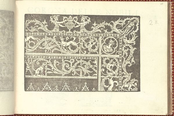 This page, number 61 from Cesare Vecellio’s "Corona delle Nobili et Virtuose Donne", presents us with potent symbols reflecting the values and cultural identity of its time. Observe the figures in arched frames; these echo the sacred spaces, like a church apse. Below, hybrid creatures engaged in combat evoke ancient myths, mirroring struggles between humans and the untamed forces of nature. The dragon motif appears here, not as a mere beast but as a symbol of chaos. We see echoes of this archetype even in medieval tapestries and Renaissance paintings, where dragons guard forbidden knowledge or treasures. This symbolizes our collective subconscious battle with the unknown. The dynamic tension between the figures, the way their bodies twist and turn, conveys a profound psychological drama that speaks to our deepest fears and desires. The dragon's cyclical recurrence through art history reveals a collective memory. These motifs resonate because they are not just aesthetic choices but are deeply ingrained in our cultural psyche, resurfacing in new forms, ever-evolving, mirroring humanity's unending quest for understanding.