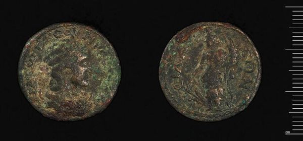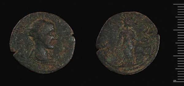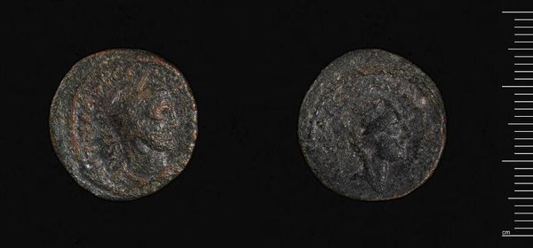 Curator: Well, hello there. Up next is a fascinating artifact: a "Coin of Seleukeia ad Kalykadnos," associated with Septimius Severus. It's a small, unassuming thing, really, but history whispers from its patinated surface. Editor: It certainly does look like it has stories to tell. My first impression is, I feel like I'm looking at an ancient sea stone, something smoothed by time and tide. It feels grounding. Curator: It's a potent symbol of power and commerce, isn't it? The images pressed into the metal, though worn, likely depicted rulers or gods. A miniature billboard of sorts. Editor: Absolutely, and that wear and tear is telling! It speaks volumes about circulation, about changing hands and pockets, about the weight of economy and belief pressing down on those images. Curator: In a way, that wear makes it more personal, doesn’t it? Less an object of state and more a tangible link to the past. I imagine all the transactions this humble coin could have made! Editor: Exactly! It's a fascinating reminder that even the most mundane objects can carry immense emotional, cultural, and psychological weight, connecting us to a shared human experience across time. Curator: It seems insignificant until you touch it, but that touch is direct contact with the past. What a powerful object. Editor: Yes, a humble but essential cultural artifact, indeed.