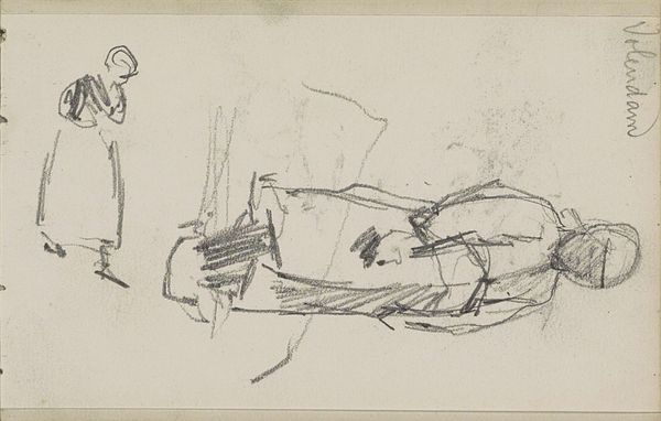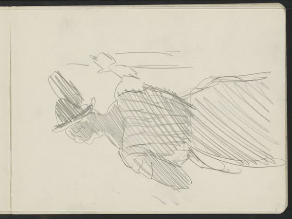 Here is George Hendrik Breitner’s sketch, "Figuurstudie," residing at the Rijksmuseum. Executed with pencil on paper, the composition presents an intimate figure study. The loose, gestural lines create a sense of immediacy, capturing a fleeting moment. Note how the dense hatching defines the form of the figure, contrasting with the ethereal quality of the surrounding space. Breitner masterfully manipulates line weight and density to suggest depth and volume. The interplay between the defined areas and the open, undefined spaces invites the viewer to actively participate in completing the image, reflecting a modernist concern with perception and representation. Consider how Breitner's sketch destabilizes traditional notions of portraiture, opting for a raw, unidealized depiction of the human form. This work, though simple in its execution, embodies a complex interplay of artistic intention and semiotic interpretation, inviting us to contemplate the nature of representation itself.