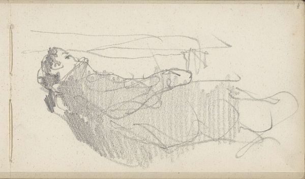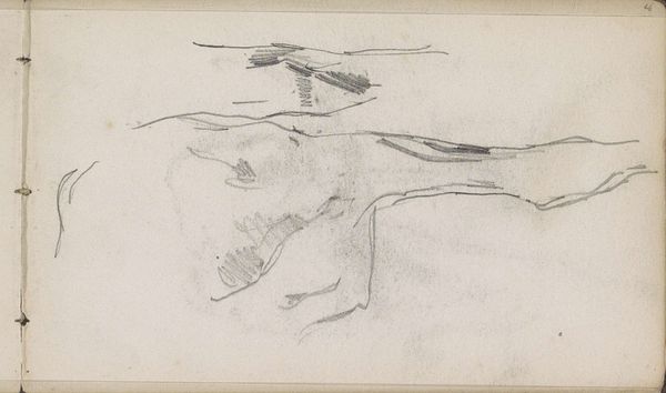 This sketch, tentatively titled "Studie, mogelijk van wolken," or "Study, possibly of clouds," was made by Willem Witsen. The medium is graphite on paper, which lends itself well to capturing the ephemeral quality of clouds. The composition consists of layered horizontal strokes, evoking the shifting forms of clouds. The artist employs a restricted palette of blacks and whites, focusing our attention on the interplay of light and shadow. The marks are gestural, with varying pressure creating a sense of depth and volume. By examining Witsen’s cloudscape, we encounter not just an image of the sky, but also an interpretation of the transient beauty of nature through the simplest of means. This sketch offers an opportunity to consider the ways in which a seemingly straightforward subject like clouds can be explored through line, tone, and texture.
