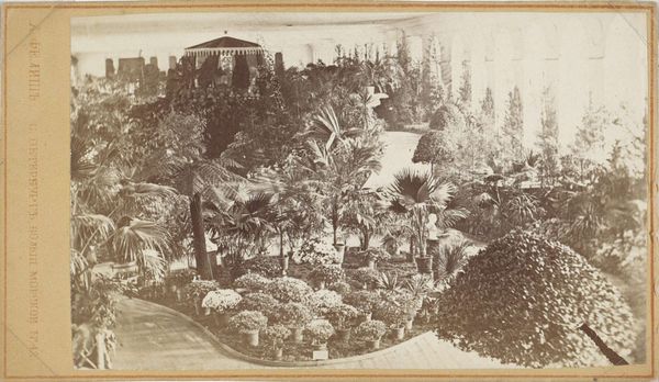 Editor: So, this is "Gezicht op een Chinees prieel in de tuin van Howqua," a photograph by Pierre Joseph Rossier, probably taken between 1858 and 1862, using the albumen print method. The stereoscopic image shows a garden pavilion in soft focus – it's charming, but also makes me a little sad with that aged tone. What do you see in this piece? Curator: Ah, a wistful charm, indeed! You've tuned into its antique spirit. This isn't just a snapshot; it’s a little time capsule, offering us a peek into a garden that feels like it exists in a dream. The pavilion nestled among the foliage reminds me of a secret hideaway, a place for quiet contemplation. Don't you get that sense of serenity? Editor: Absolutely, the foliage feels very contained. Almost too... curated? Curator: Perhaps. Rossier was working in an era of burgeoning Orientalism. These carefully constructed images weren't always about depicting reality, but about creating a mood, evoking a sense of the exotic. The sepia tone reinforces that feeling of a bygone era, doesn’t it? It’s less about documentary and more about fantasy, wouldn't you agree? Editor: I see what you mean. It's like the photograph is playing up this "oriental" ideal. Is it possible he chose this specific shot to amplify that fantasy? Curator: That's entirely possible. The framing, the soft focus – they all contribute. Now, knowing this, does it shift your initial impression? Editor: Definitely. It’s fascinating how context can change everything! The piece is less sad and more about cultural interpretation, now that you point it out. Thank you. Curator: The beauty of art, isn’t it? It speaks, we listen, we interpret, and in the process, we learn a bit about ourselves too. A wonderful exercise, all things considered.