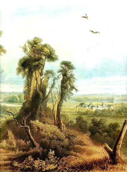 Curator: Karl Bodmer, a Swiss artist, painted "Mouth of the Wabash [ Indiana ]" in 1833 using watercolor, a defining work of the Hudson River School and capturing a realism tinged with romanticism. Editor: It feels humid and still, doesn’t it? The hazy light and reflections in the water create such a tranquil atmosphere. The composition with its foreground of tangled branches almost makes it feel claustrophobic, but in an immersive way. Curator: Bodmer's involvement in Prince Maximilian's expedition led to this, and other ethnographic portrayals that offer us invaluable insights into 19th-century interactions between colonizers and Indigenous communities. Think of the legacy of colonialism encoded in landscapes like this one, even in the ostensibly "empty" depictions. Editor: I notice how the artist frames the vista, almost stage-like, emphasizing the tonal qualities of the golden light reflected across the water and the texture of the trees, which are almost reaching out towards the viewer. Semiotically speaking, nature acts as both signifier and signified. Curator: Exactly, but remember the politics inscribed. Depictions of supposedly untouched landscapes often masked dispossession, contributing to romantic narratives which downplayed the realities of forced displacement, cultural genocide, and systemic oppression suffered by Indigenous peoples. The Hudson River School helped manufacture consent. Editor: True, we cannot extract a work of art from the historical discourse it inhabits, or willingly ignore the consequences or historical context. But stepping back for a moment: note the artist’s use of light and shadow creating depth and complexity? Even though the palette itself is limited to muted colors, observe how Bodmer suggests texture by juxtaposing one against another, drawing the eye. Curator: Well, let's keep our eye equally trained on unearthing whose histories get painted over. By acknowledging the social and political context of these paintings, we develop a better sense of what art and whose interests it ends up serving. Editor: It seems that Bodmer’s work here allows one to read many texts simultaneously: as both an artifact and a document: both aesthetic object and socio-historic artifact. It’s beautiful in its technique while holding uncomfortable truths about an era.