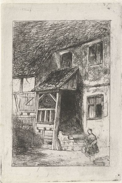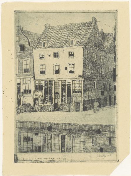 Elizabeth O'Neill Verner made this etching, "In Old Charleston," using metal plates, acid, and ink. Verner engaged with the skilled traditions of printmaking, a field with its own rich history of creative practices. In the etching process, the metal plate's material qualities are crucial. The artist protects parts of the plate with a waxy, acid-resistant coating, and then the exposed metal is bitten away by the acid, creating lines that hold ink. This print depicts a street scene with a laborer pushing a cart, suggesting themes of daily life and labor in Charleston. The etching technique, with its fine lines and tonal variations, captures the architectural details and the atmosphere of the city. Verner's focus on everyday scenes and the lives of ordinary people blurs the lines between fine art and craft. By highlighting the work and traditions of printmaking, and reflecting on the labor evident in the scene itself, Verner elevated the lives and culture of Charleston’s community.