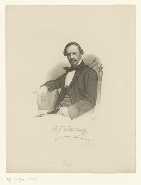 Curator: Immediately, I notice the gravity, the solemnity etched in the subject's profile. He seems almost burdened by some unspoken weight. Editor: We are looking at a piece entitled "Portret van Stanislaus, Graf von Kalckreuth" by W. Müller, likely created sometime between 1860 and 1892. It's a drawing rendered in graphite, quite meticulous in its detail. Curator: The beard is striking, a symbol of established masculinity in the 19th century. It makes me wonder, what did it mean to present oneself in this way during that era? What statement was Kalckreuth trying to make about his position, his authority? Editor: The beard certainly acts as a visual anchor. Think about it—beards often represent wisdom, power, and a certain connection to tradition. It’s an interesting contrast, though, with the soft lighting and the somewhat vulnerable gaze in his eye. Perhaps a tension between outward appearance and inner emotion? Curator: I think your read is very astute. In thinking about the political and social context of Germany at that time, the push towards unification, the burgeoning sense of national identity, does Kalckreuth’s image tie into those larger questions of German identity formation through historical images and cultural memory? Editor: That’s a potent thought. This portrait can be regarded through the lens of Romanticism—with its focus on emotion and the individual. This print seems to recall established symbols, a sense of longing and belonging that was often associated with Romantic artistic visions. We could examine whether the sitter embodies a "new" German ideal. Curator: It strikes me that this seemingly straightforward portrait actually opens up complex considerations about gender roles, social power, and artistic representations. Editor: Agreed. There’s a quiet depth beneath the surface that invites ongoing investigation. Curator: Definitely an excellent piece for further critical thought. Editor: Indeed; many avenues yet to explore.