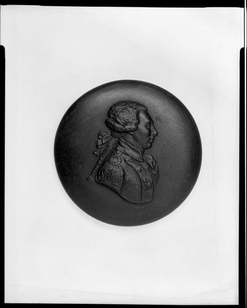 Editor: This is a small Wedgwood piece titled "Atlas Supporting the World". What strikes me is the figure's posture; he seems so burdened, yet resolute, all within such a tiny space. What do you see in this piece? Curator: The dynamism in the compact sculpture is remarkable. Note the interplay of light and shadow which creates a sense of depth, emphasizing Atlas's strained musculature. The artist clearly understood the aesthetic value of contrapposto, lending both stability and a latent energy to the form. Editor: So, it's the technical artistry, the formal elements, rather than the narrative, that you find most compelling? Curator: Precisely. The composition itself tells a story of balance and tension, quite apart from the myth. Editor: That's a great way to look at it, thank you.