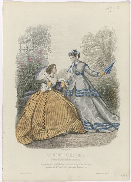 This fashion plate was made in 1867, by an anonymous artist, for 'La Mode Illustrée', a widely circulated French fashion journal. These plates offer a glimpse into the visual culture of the time. Fashion journals weren't just about clothes; they mirrored and shaped the aspirations and identities of women in the middle and upper classes. They promoted an ideal of femininity centered around elegance, domesticity, and refinement. Consider the impact these images had on women who often found themselves confined by societal expectations, yet yearned for self-expression. What narratives did these images perpetuate, and what possibilities did they offer? These weren't passive representations; they actively contributed to the construction of gender and class identities, telling women how to present themselves to the world, and inviting them to participate in the burgeoning consumer culture. While these images reflect the limited roles available to women, they also reveal the creative ways in which women engaged with fashion as a form of agency. They invite us to consider fashion as a complex site of both constraint and expression.
