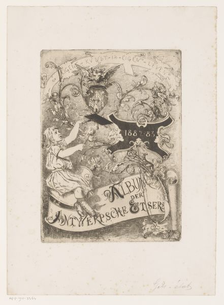 Willem Geets created this intricate print titled, "Diverse verbeeldingen met betrekking tot het studentenleven," which translates to "Various representations related to student life," using etching. Geets, born in Belgium, lived during a time of significant social change, and his work often engaged with themes of identity and community. This print offers a glimpse into the world of students, likely at a university, portraying various aspects of their lives through symbolic imagery. The print is filled with characters and symbols: an owl, often associated with wisdom, juxtaposed with figures of revelry and caricatures. Together they offer commentary on the balance between scholarly pursuits and the more playful aspects of student life. It's also impossible not to notice that this is a distinctly masculine space, with little suggestion of women present. What this absence says about educational opportunities in the late 19th century is hard to miss. By capturing these scenes, Geets invites us to reflect on the experiences of those who came before us, and to consider how the pursuit of knowledge shapes us and informs our identities.