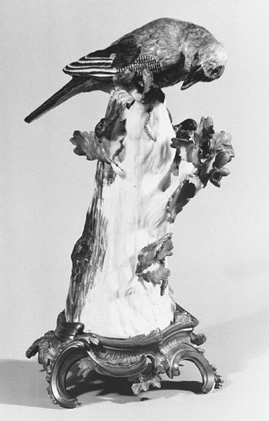 This sculpture of a Roller was made at the Meissen Manufactory in Germany in the eighteenth century. It's a porcelain figure, part of a pair, representing a bird perched above a nest of fledglings. The Meissen Manufactory was established in the early 18th century, the first to produce porcelain outside of China. Aristocratic patronage was critical to Meissen's success. Augustus the Strong, Elector of Saxony and King of Poland, founded the manufactory, using it to produce luxury goods that would enhance his prestige. The vogue for porcelain collecting swept the European aristocracy, its whiteness and delicate form a signifier of wealth and status. The naturalism of the bird is typical of the period, when scientific observation began influencing decorative art. But the bird here also serves a symbolic function, evoking a certain kind of aristocratic power. These porcelain sculptures invite us to consider the complex social and economic networks that supported artistic production in 18th-century Europe. Careful archival research can reveal the relationships between artists, patrons, and institutions that shaped the creation and reception of these objects.