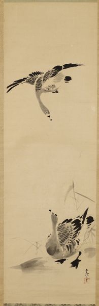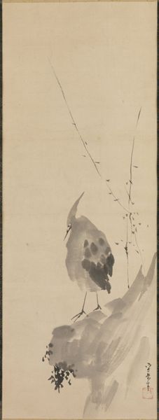 This hanging scroll, Heron and Reeds, was created by Kano Tsunenobu in Japan, using ink and color on paper. The ethereal quality of this painting comes from the absorbent nature of the paper, which allows the ink to bleed and create soft, diffused forms. Notice how Tsunenobu used varied brushstrokes to define the textures of the heron's feathers and the reeds. The precision of the lines suggests the artist's mastery of brush control, a skill honed through years of disciplined practice within the Kano school, a dominant force in Japanese painting for centuries. The Kano school was known for its standardized curriculum and hierarchical structure, which meant that artists, or artisans, often worked collaboratively on large-scale projects. Though it is not known if this work was made entirely by Tsunenobu himself, we can appreciate the way in which the artist used traditional materials and techniques to depict the natural world. Thinking about the way this artwork was made helps us to move beyond conventional assumptions about the divide between art and craft.