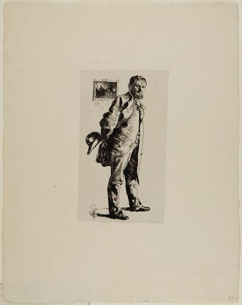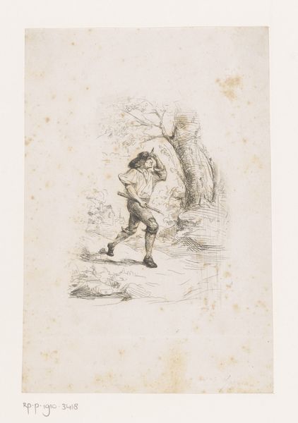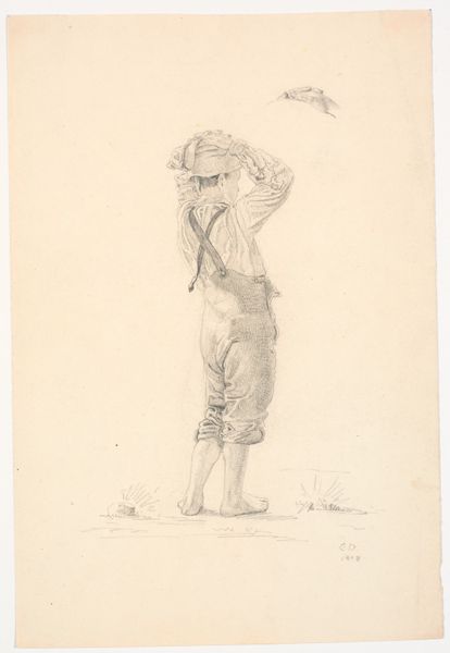 Editor: So, this is Thomas Sidney Cooper's "Boy on Horseback." It feels like an informal study, capturing a fleeting moment. I'm struck by the boy's pointing gesture. What symbols do you see at play here? Curator: The pointing finger is key. Throughout art history, it directs our gaze, often toward a moral or spiritual truth. Consider John the Baptist, for instance. Here, though, what is he indicating? Perhaps a future aspiration or a path yet to be taken? Editor: That's interesting! I hadn't considered the historical weight of that gesture. It makes me think more about direction and guidance. Thanks! Curator: And it invites us to consider the boy's role in directing the horse, or whether he's simply along for the ride. We're left to ponder our own paths, guided or not.