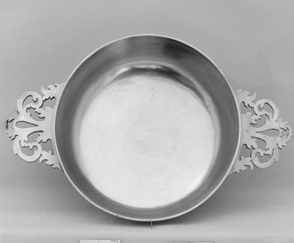 Editor: Here we have the “Salver,” crafted from silver by David Willaume I around 1710. The baroque details are beautiful! There is a real weight and solidity in the image. It feels simultaneously ornate and very proper. What do you see when you look at it? Curator: The craftsmanship itself speaks volumes. It represents a continuity, a cultural memory embedded in precious materials. Note how the coat-of-arms isn't just decoration; it's a statement. A carefully chosen image designed to express power. Can you see how the salver becomes a stage for the performance of identity? Editor: I suppose it's like…a brand. What kind of values or concepts are typically tied to that kind of heraldry? Curator: Think of the language of family crests: lineage, valor, perhaps even entitlement. Silver itself connotes wealth, status. It all plays into the construction of social narratives. Editor: It feels more charged now! I was focused on how decorative it was. Curator: Baroque loved its surface, and yet there's depth. Every flourish means something, however subtle. Editor: I definitely see the layers of meaning more clearly now! Looking beyond the shimmer, it reveals a history of symbols acting almost like cultural DNA. Curator: Exactly! These symbols allow stories to transcend time and carry legacies into the future.