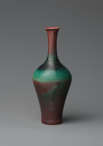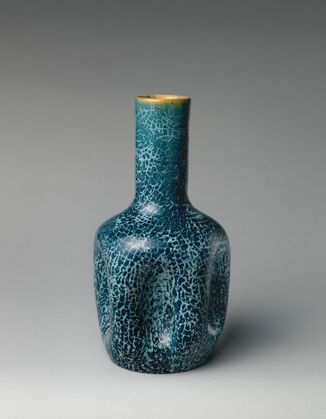 Editor: Here we have a ceramic vase, created sometime between 1798 and 1902, its currently located at the Met. It has a beautiful seafoam green glaze and a subtle, almost fragile appearance. What draws your eye when you look at this piece? Curator: Immediately, I see an object burdened and beautified by time. Notice the crackled glaze, a network of fissures running across the surface. These aren't flaws; they're a map of the object's history. This technique, often deliberate in Chinese ceramics, speaks to a cultural embrace of wabi-sabi – the beauty of imperfection and impermanence. Editor: That's fascinating. The "flaws" become integral to the piece. Curator: Exactly. Each crack whispers of the kiln's intense heat, the earth's slow transformation. But what does the color evoke for you? Editor: The green makes me think of jade, something precious but also very natural. Curator: Indeed. Jade in Chinese culture symbolizes immortality and purity, often associated with spiritual power. This vase, then, becomes more than a vessel; it’s a keeper of cultural memory, carrying with it aspirations for longevity and harmony with nature. Consider, too, that objects like these often served ritualistic purposes or adorned the homes of scholars, reflecting refined tastes and social standing. Editor: I never would have seen so much looking at this vase! Thanks for pointing all of this out. Curator: My pleasure! Hopefully our listeners are now more mindful of the enduring presence of the past in everyday objects.