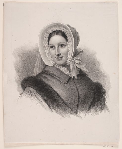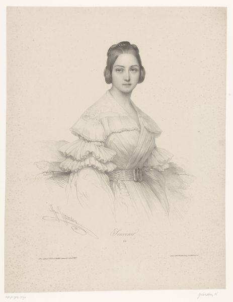 Emil Ditlev Bærentzen rendered this portrait of Marie Krogh using graphite. Notice how Bærentzen employed subtle gradations to capture the likeness of his sitter, achieving a remarkable sense of volume and depth. The composition is carefully structured, with the subject positioned slightly off-center, drawing our eye towards her face. Her gaze is directed slightly to the left, creating a sense of openness and engagement. The detailed rendering of fabric folds is particularly striking. Consider how these patterns interact with the figure’s contours to both reveal and conceal the subject’s form. Bærentzen’s emphasis on surface texture and the play of light is not merely decorative but integral to the portrait's expressive power. These formal qualities function as signs that invite us to consider broader cultural and philosophical discourses related to representation.
