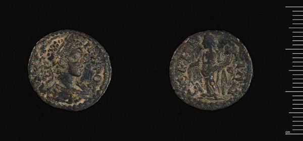 Editor: So, this is a coin of Edessa under Elagabalus. The wear and tear on such a small object is striking. What can we learn from this little artifact? Curator: Well, its creation embodies power, privilege, and identity. Elagabalus’s reign was marked by controversy surrounding gender and religious norms. This coin, in that light, becomes a material statement. Editor: A statement? In what way? Curator: Consider the image of Elagabalus: idealized, Roman, male. Yet, Elagabalus challenged traditional Roman values. Does the coin reinforce power structures even as his reign disrupted them? Editor: That's a lot to think about with such a tiny piece of metal. I hadn't considered the contradictions. Curator: Exactly! It opens a window into the tensions of that era.