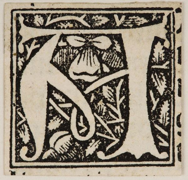Curator: This woodcut, titled "Letter C", is by an anonymous artist and resides here at the Harvard Art Museums. Editor: Immediately, I'm struck by its stark, graphic quality; the high contrast really emphasizes the materiality of the woodcut process itself. Curator: Considering this piece, I'm drawn to the idea of anonymity and its possible socio-political implications. Why wasn't this artist identified? What power structures were at play? Editor: Perhaps the artist was a craftsperson, more focused on production than recognition. The labor involved in carving each line speaks to the value of skilled handiwork. Curator: I wonder about the audience for this letter and the accessibility of literacy for them, historically speaking. Editor: It's a powerful reminder that even the most seemingly simple objects carry layers of meaning, material and social histories. Curator: Absolutely. Looking through an intersectional lens allows us to question these supposed givens and unveil the narratives hidden within.
