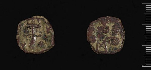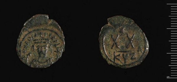 Curator: What a find! Here we have a Half Follis of Justinian I, minted in Thessalonica. It's a small bronze coin, but it carries a tremendous weight of history. Editor: It looks so worn and humble, doesn't it? A far cry from the grand visions of empire it once represented. It makes you think about power—how it circulates, and how easily it erodes. Curator: Absolutely. The coin features Justinian himself on one side, and a large "K," indicating its value, on the other. The artistry is simple, yet effective. Editor: And that simplicity speaks volumes. The very act of mass-producing these images, these symbols of authority... it’s a form of propaganda, embedding power into the everyday. Curator: I suppose in some ways, it worked. Though seeing the coin, almost as if unearthed yesterday, really underscores the endurance of art. Editor: Or perhaps, the enduring power of symbols. Food for thought, indeed.