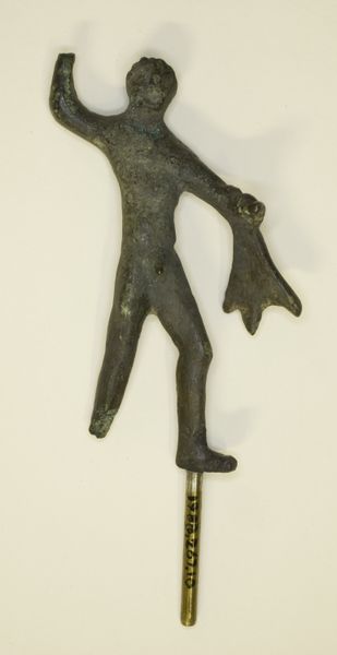 Curator: My goodness, this thing is strange and wonderful. It looks like a steampunk turtle, lost in time and meaning. Editor: Right, let’s unpack it a bit. We’re looking at a brass goldweight from the Akan people, likely created sometime in the 19th or 20th century. It's titled "Tortoise with Fish." Curator: "Tortoise with Fish"—I see! Now the little finned friend on top makes perfect sense. And that gorgeous, aged brass…it feels like touching history, like whispers of old stories linger in the metal itself. Editor: The "lost in time" feeling you mentioned actually hits close to the mark. These goldweights weren’t simply decorative objects; they were units of measurement, a vital tool in Akan trade. Each weight represents a specific value. Curator: Ah, so practical beauty! Imagine holding that little turtle knowing you're weighing fortune and fate at the same time. What about all the detail – the shells with the coils? Are they common in similar pieces? Editor: Absolutely! The spirals and geometric patterns are characteristic of Akan craftsmanship, a blend of stylized natural forms with symbolic meanings that probably would've shifted according to context. There's such an attention to minute details… think of the lost-wax casting technique. It highlights the incredible skill that was a key piece of Akan culture. Curator: I love how a humble tool can become a testament to the beautiful, intrinsic craftsmanship of a culture. It brings into sharp focus that often there is no "high" or "low" art - it’s all bound up in a story, a people. Editor: Exactly. It transcends simple functionality; it represents social order, artistry, and, ultimately, the circulation of wealth and materials. Curator: Looking at it now, I feel like I am also weighing possibilities and perspectives rather than tangible valuables. Editor: Agreed. Hopefully it will prompt others to do the same!