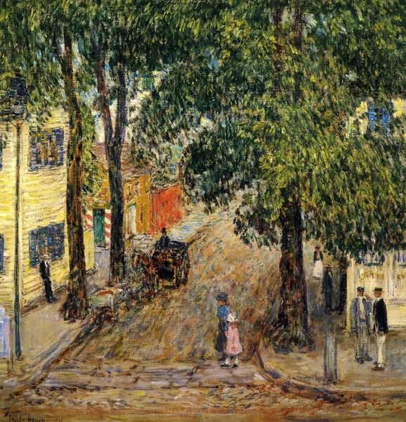 Childe Hassam made this painting of Elms in East Hampton, New York with oil on canvas, and it’s a real study in light and color. The way he’s dabbed the paint on, it's almost like he’s trying to catch the air itself. Look at how the sunlight filters through the trees, each leaf rendered with a quick, distinct stroke. The colors are so vibrant, yet they blend together to create this hazy, almost dreamlike scene. You can almost feel the warmth of the sun on your skin and hear the rustling of the leaves. Then there's the texture – thick, almost sculptural in places. It’s like he’s not just painting what he sees, but also how it feels to be there, in that moment. This way of capturing a fleeting moment reminds me of Monet, but Hassam has his own distinctly American take on Impressionism. It’s like he’s saying, "Hey, we have beauty here too."