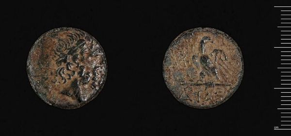 Editor: This is a coin of Antiochos I Soter of Syria, from Antioch. It's small and worn, but it looks like there are figures and inscriptions on both sides. What can you tell me about it? Curator: Coins like this are powerful tools of representation. Who gets to be on them, and how? Antiochos, as a Seleucid ruler, is consciously connecting himself to a Hellenistic lineage, but also grappling with local Syrian identities. What does it mean to claim power through these combined visual languages? Editor: So, it's not just money, but a statement? Curator: Exactly! It speaks volumes about the cultural negotiations happening in this region at the time. The imagery and inscription are deliberate choices meant to project authority and connect with different groups of people. Editor: I never thought about a coin carrying so much weight. Curator: It's a reminder that even the smallest objects can reveal complex power dynamics and cultural exchanges.