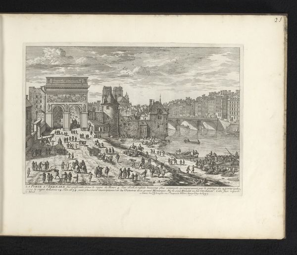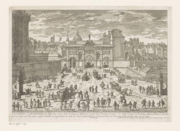 Editor: This engraving, created by Carel Jacob de Huyser in 1776, depicts "Street Fighting in 's-Hertogenbosch between the Population and the Fencing Guild, 1579." It feels quite chaotic, yet carefully detailed, like a freeze-frame of a very turbulent moment in the city’s history. What's the historical context of such a conflict in a Dutch cityscape? Curator: Well, consider the broader socio-political climate. The Dutch Golden Age wasn’t without internal conflict. Guilds, like the fencing guild, wielded significant power, and were deeply interwoven with civic identity and, at times, were perceived as tools of social control. De Huyser created this print almost two centuries later; how might the understanding and perception of guilds and civil unrest have changed between 1579 and 1776, especially with evolving notions of civic duty and emerging Enlightenment ideals? Editor: That’s fascinating. It seems that this image isn’t just a neutral recording of an event, but a later interpretation. Could this be seen as a commentary on power dynamics within Dutch society at the time De Huyser was making it? Curator: Precisely. Think about the act of representing the "population" versus a powerful guild. Who gets to write or, in this case, depict history? This image then becomes a site of negotiation – it may critique the historical event but, moreover, engages with contemporary debates surrounding social hierarchies and popular sovereignty during the Enlightenment. Who do you think would have purchased and displayed an image like this, and what messages might they have been keen to express by owning it? Editor: Perhaps members of the burghers who would want to see their predecessors be vindicated by history. Thank you, seeing it as a commentary on power dynamics makes it more thought-provoking! Curator: Exactly! And understanding the historical distance and contemporary reception gives the artwork more layers than first impressions may reveal.