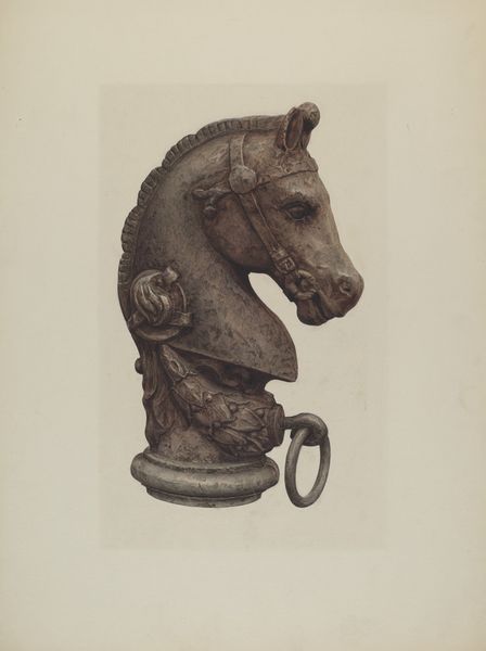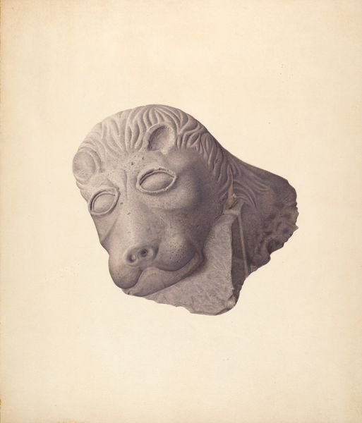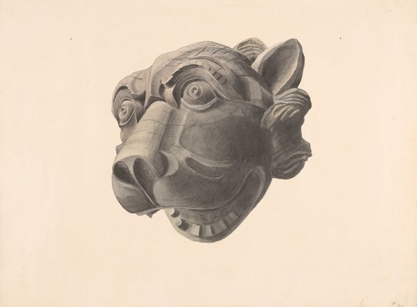 Curator: Before us, we have Alton K. Skillin's graphite drawing, "Carved Cat Head (Detail)," created around 1936. The lines seem incredibly precise. What is your initial impression? Editor: My eye is drawn immediately to the texture—the suggestion of weathered stone and deep age. The cracks especially are beautifully rendered. Curator: Absolutely. The drawing simulates a kind of classical-realism, it begs the question of where the drawing itself falls on the spectrum between design and reproduction? How does it shape our perception of craftsmanship? Editor: I read that cracking as more than simple aging. Notice the stylized way they emphasize the eye. To me, it conjures a powerful connection to ancient Egyptian iconography and ideas around divine animal power and sacred space. That feline gaze projects ownership. Curator: Good eye. It is a potent cultural reference. Considering the 1930s, however, one can imagine a broader cultural discourse on ornamentation as integral to machine age industrialization or architectural modernism. Editor: Possibly, but I see layers upon layers of symbolism in the figure itself. Cats held incredibly potent meanings across numerous cultures, and these archetypes find expression even today. It has a universal quality that goes beyond that decade. Curator: It’s undeniably impactful. Let’s also not overlook the craft element here—the artist is, of course, selecting an element, an archetype, but the way the materials were procured, distributed and utilized reflects economic realities of the day. Editor: A great point. I think the artist captured an element of primordial instinct. The animal seems vigilant, a keeper of secrets. I leave this with thoughts about continuity across cultures. Curator: And I will think about how we, too, are situated to produce something—knowledge or discourse—to continue an act of material transformation in our world today.