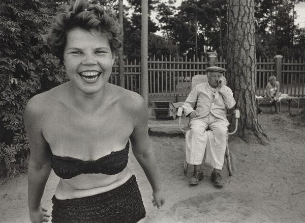 Gordon Parks captured this image of Ingrid Bergman in Stromboli, Italy. Parks, a Black American photographer, documented Bergman during a tumultuous period in her life. She was facing immense public scrutiny for her affair with Italian director Roberto Rossellini, which challenged the conventional expectations placed on women, particularly those in the public eye. Here, Bergman is caught in a moment of thoughtful repose, set against the backdrop of local Italian women and children. The composition creates a stark contrast between Bergman's individual experience as a celebrated, yet scandalized, figure and the communal life of the local women. Parks, who often focused on themes of social justice and identity, seems to capture a sense of isolation and introspection in Bergman's expression. Parks once said, "I saw that the camera could be a weapon against poverty, against racism, against all sorts of social wrongs." In this photograph, we are invited to consider the complex interplay of fame, gender, and cultural context, and to reflect on the personal cost of societal judgment.