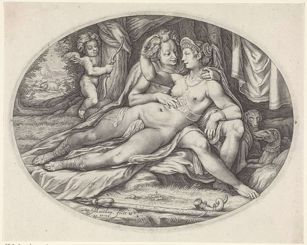 Jan Barentsz. Muyckens etched this depiction of a sleeping Venus spied upon by a satyr in 1634. The iconography of Venus, Cupid, and the Satyr carries echoes from antiquity. Venus, the goddess of love and beauty, is often depicted nude to evoke themes of desire and fertility. Cupid, her son, sleeping with his bow discarded, adds a layer of vulnerability. The satyr, a symbol of untamed nature, spies on them; his presence introduces a narrative of voyeurism. This composition calls to mind similar themes explored in Renaissance paintings, like those by Titian, where the exposure of female beauty to a male gaze carries complex undertones of power and vulnerability. The satyr's presence introduces an element of the Dionysian, a primitive impulse that contrasts with Venus’s cultivated beauty. The cyclical nature of these symbols continues through the ages, reflecting humanity’s ongoing negotiation between the Apollonian and Dionysian forces, between order and chaos, beauty and primal instinct, constantly reappearing in art and culture in new forms.
