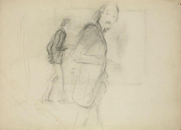 Curator: Whistler’s “An Ajaccio Fisherman” presents a delicate, almost ghostly, figure rendered in pencil. I’m struck by how fleeting it feels. Editor: It's the barest sketch, isn’t it? Look at the visible process – the rough lines forming the fisherman and the suggestion of buildings in the background. I wonder about the labor and context surrounding this portrayal of a working man. Was it commissioned, or merely observed? Curator: The figure seems contained, but is that containment chosen or imposed? Corsica, with its own complex history of occupation and resistance, presents a specific lens through which we see this individual. How does that affect our interpretation of him? Editor: The materiality definitely informs the reading. The artist's hand, the quality of paper, the very tools used—they all speak to a certain class perspective observing another's labor. Curator: Right. It allows us to question the historical power dynamics inherent in representation. Editor: It's a brief but powerful reminder of art’s social context. Curator: Absolutely, and also of the narratives we construct, even in what appears to be a simple sketch.