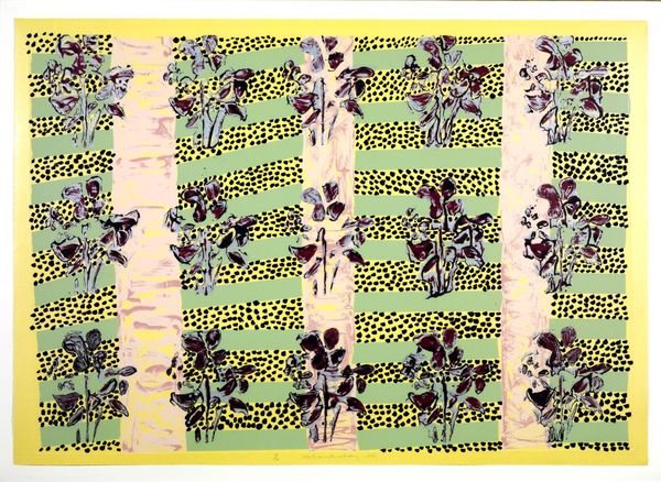 Curator: Kubota Beisen's illustrated magazine about the Sino-Japanese War, dating from 1894-1895. The Rijksmuseum holds this compelling work. The chosen medium is the woodblock print, classified within the Ukiyo-e tradition. Editor: My immediate reaction is the sense of patterned repetition, juxtaposed against a potent yet muted palette. There is a very regimented organization of elements on display, each one reminiscent of the other. Curator: Indeed. Observe how the radiant sun motif, combined with the floral depiction, becomes a structural framework for the composition. It presents as an almost formal, calculated arrangement. Editor: Yet that seemingly decorative surface speaks to larger sociopolitical currents. The imagery invokes notions of national pride intertwined with the violence of warfare and natural world symbols. The floral design and radial symmetry become a statement about Japan’s strength and militaristic ambitions at that specific moment in history. Curator: But even separate from such a reading, it is quite the achievement, to consider this not only a powerful image but to analyze its compositional components individually. The meticulous carving, the careful layering of colors--even in the prints showing wear--speaks to formal considerations. Editor: Absolutely. It prompts a necessary confrontation with that history, considering how such imagery functioned propagandistically. Analyzing what choices the artist made is not an innocent process; rather, it reveals underlying narratives regarding Japanese identity and their aspirations to modernize and conquer during the period. It allows us to challenge nationalism and contextualize empire. Curator: Perhaps. In isolation, one appreciates the artist's understanding of space and form, creating this dialogue between symbolic elements using a highly controlled method. It represents that which all artists crave: harmony and balance in representation. Editor: And ultimately a study such as this is an urgent lesson in the role art can play in representing, perpetuating, and obscuring difficult historical realities. The formal properties cannot fully mask or diminish the complexity of its subject matter.
