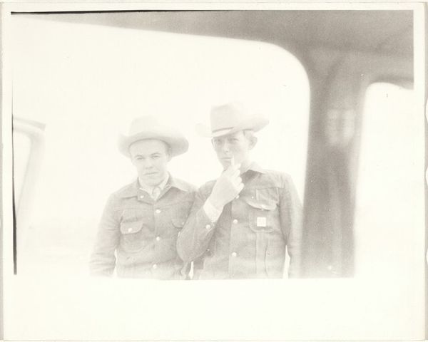 Editor: So, this gelatin silver print, titled "Boys standing beside automobile--Alabama," was taken by Robert Frank in 1955. I find its grainy texture and seemingly casual composition quietly unsettling. What do you see in this piece? Curator: I see a powerful commentary on American society at a critical juncture. Frank’s work, particularly his project "The Americans," often uses seemingly mundane scenes to dissect deeper issues of race, class, and power. These boys, posed awkwardly in front of a car that speaks of both mobility and the status symbol, become representative of the promises and the stark realities of 1950s America, especially in the South. Editor: I never thought about it that way. It just looked like a simple snapshot. What specific details jump out at you? Curator: Consider the setting – Alabama, a state deeply entrenched in the racial segregation of the Jim Crow South. Who has access to that car, and who doesn't? What does the lack of visible adults suggest about the societal structures and guidance for these young men? The very act of Frank, a Swiss-Jewish immigrant, photographing this scene is a deliberate act of witnessing and documenting the social landscape from an outsider's perspective. Editor: It's almost like the car represents a dividing line, or even a burden? Curator: Exactly. It’s a physical manifestation of the complex social fabric of the time, highlighting both the aspirations and the limitations imposed by societal norms. The way the boys are positioned—some touching the car, some detached— speaks volumes about their potential roles within that society. We must consider intersectionality, questioning how race, class, and gender influence their lived experiences. Editor: Wow, I hadn't considered all of that. I appreciate that perspective. Curator: Art, even in its simplest forms, serves as a mirror reflecting the complexities of the world around us. By engaging with its historical and social context, we can gain deeper insights into ourselves and the systems that shape our lives.