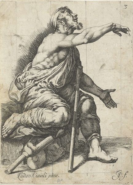 Johan Christoph Petzold created this drawing, “Nøgen kriger bundet til et træ”, likely with graphite or black chalk on paper. Notice how the artist’s marks work to describe the figure's musculature, and the drapery wound around him. The intense hatching suggests the texture of stone, perhaps evoking a sculpture or a monument. The drawing medium itself is key. Here, the artist is not working towards a finished object, but rather exploring form, or perhaps planning a larger work. It’s an inherently provisional method, one that sets up a different relationship to the final design than, say, a highly finished oil painting. Consider the physical labor that went into crafting paintings, sculptures, or even tapestries. Petzold offers us a glimpse into the ideas behind production. It’s a directness that invites us to appreciate the connection between the artist’s hand, and the monumental themes he explores. In this way, we can look beyond the traditional categories of fine art and craft, to understand the social and material context in which all art is made.