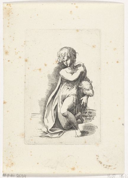 Curator: The somber intensity conveyed within this engraving immediately stands out; the texture work adds a heavy gravitas. Editor: That’s "Beeld van Saturnus in de noordelijke galerij van het Stadhuis op de Dam," a print by Hubert Quellinus dating back to 1655. It resides here at the Rijksmuseum. What elements of its composition give you that heavy feeling? Curator: Certainly, it begins with the imposing figure of Saturn himself—an aged man with a wild gaze eating a helpless infant. Even the details, like the meticulously rendered musculature, contribute to the drama. And what about the other symbols included: the harvesting sickle, lyre and broken sculpture head; a disturbing juxtaposition of mortality with creative pursuits. It evokes themes of decay and the futility of human endeavors. Editor: I can appreciate that. It appears that Quellinus is deploying traditional iconography to capture the themes of Baroque art—mortality and vanity, of course—but let’s think more about what this image signifies in relation to Amsterdam City Hall. As we look closely, we see how this work relies upon visual language. What can it suggest about cultural memory in this context? Curator: Yes, we’re viewing a piece deeply embedded in Dutch history and civic identity. Saturn's presence speaks to a cyclical view of time—of prosperity followed by decline. This serves as a cautionary symbol within the bustling city hall, reminding officials about the ephemeral nature of earthly power and the importance of just governance to preserve the culture of the Dutch Republic. In a culture still traumatized by the beeldenstorm, or iconoclastic fury that swept across the Low Countries a century earlier, such considerations held enormous weight. Editor: Your point about the cyclical is interesting. The stark lines of the print lend an incredible dynamism. Considering its creation and installation within the Stadhuis, how might it communicate ideas about law, history and leadership? Curator: Perhaps in linking political stability to cultural achievement Quellinus highlights the tension between tradition and innovation in early modern Holland. Editor: That strikes me as especially perceptive. A complex emblem indeed. Curator: It makes you reconsider our fleeting time on Earth and the marks we hope to leave.