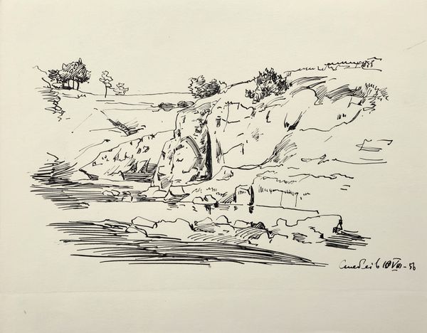 Editor: This is Winslow Homer's "Boy with a Stick," created in 1879, a pencil drawing. It has such a light and airy feel. What draws your eye when you look at it? Curator: Immediately, I'm drawn to the material conditions reflected in the landscape. Notice the cut tree stumps, the broken fence. What does this tell us about land use and labor practices in 1879? Homer isn't just depicting a scene, he's showing us a landscape shaped by human activity, resource extraction, and possibly the lingering impact of the Civil War. Editor: That's fascinating, I hadn't thought about the impact of deforestation represented here. Curator: Exactly. The "stick" becomes more than just a plaything. It's a connection to the very trees that have been harvested, sold, and consumed. Consider the labor involved – the felling, transporting, processing – and where this timber ends up. It re-frames our understanding of "boyhood." Is it purely idyllic, or is it also linked to production and social realities? Editor: So you're saying the materials themselves become part of the story? The pencil, the paper, even the boy's simple clothes? Curator: Precisely. Think about where those materials came from, who produced them, under what conditions. These elements challenge the notion of the artwork as some purely aesthetic creation, divorced from the real world. Homer makes no claims here on high-art: rather, he is communicating human’s relationship to land through accessible means and form. Editor: This really gives me a new perspective on considering all of the production implications of this drawing. Curator: Absolutely. Focusing on materiality grounds art in the world and makes us ask hard questions. This type of analysis offers the possibility to understand historical frameworks and realities reflected by artists.