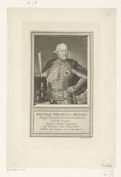 This portrait of Captain Krabbe was made around 1800 by Johann Jakob Rieter, using etching and engraving on paper. Look closely and you'll see how the network of finely-etched lines creates tone and shadow. The process begins with coating a metal plate with a waxy ground, through which the artist scratches an image. Acid is then applied, biting into the exposed metal. The longer the acid bath, the deeper the line, and the more ink it will hold. The plate is then inked and pressed onto paper, leaving a permanent impression. It's a printmaking method that allows for the relatively quick reproduction of imagery, like this portrait of Captain Krabbe, celebrating his naval exploits. Prints like this one allowed for the broad distribution of information and imagery during a time of political upheaval and war. They democratized portraiture, making it available beyond the wealthy elite. So while this image depicts a man of power, the etching process itself speaks to a wider social shift, where knowledge and representation became more accessible. It’s a reminder that even traditional art forms are shaped by the social and economic contexts in which they're made.