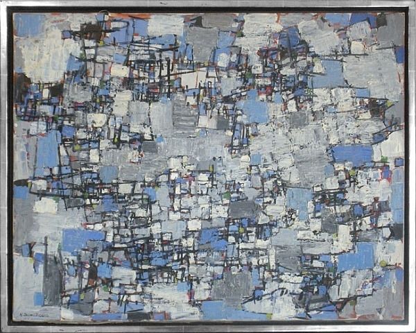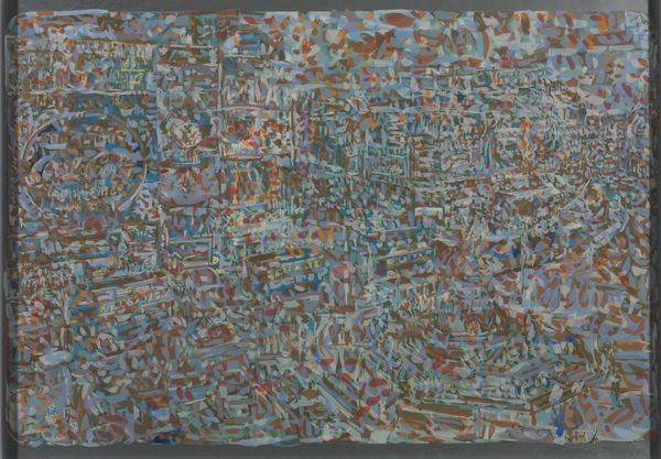 Curator: Welcome. We're standing before an untitled abstract painting by Bui Xuan Phai. It's painted with acrylic, and although undated, it is considered to be within his later works. Editor: Immediately, I’m drawn to the feeling of chaotic energy—a wildness tamed by structure. It feels like peering into the intricate workings of a complex clock or maybe an abstract city. Does it give you the same feeling? Curator: In many ways it does! It is not unusual that he would present works reflecting the social anxiety, constraint and perhaps urban confinement prominent under socio-political restriction in Hanoi at the time he produced these abstractions. Editor: Confinement definitely rings true. But then there's the almost joyful colour palette! Pink, blue, red dancing amongst black outlines. Are you telling me that the artist intentionally created dissonance between content and application? Curator: The painting becomes part of a political game where messages are communicated under duress but also through a vibrant explosion of patterns which becomes its own form of subversive social critique. The artist also had to rely on coded abstract communications simply in order to survive, artistically. Editor: What kind of commentary are you reading here—urban development? Cultural struggle? Something else entirely? To me, these structures feel like neurons firing, networks buzzing—almost internal. I have a curious feeling. It’s exhilarating! Curator: Exactly. So there’s something universally relatable happening here, about society in constant, hectic formation—it asks viewers to challenge perceived limitations on self-expression and resist being confined, artistically or politically. It may very well resonate with people on both local and universal levels. Editor: It's that resonance that keeps me hooked, makes me ask questions of this painting. Even though it's "untitled" and categorized as abstraction—the work vibrates, speaks! I find the title itself very funny considering all that it tells me, ha! Curator: That tension is vital to his creative statement! Art historians play their public role so that people learn that "abstraction" here can point back toward real conditions on the ground in Hanoi under particular historical conditions and the value of subversive art at large! Thank you for your input! Editor: It’s been an experience; thanks for yours! To think something "abstract" could still offer an urgent message. Food for thought.