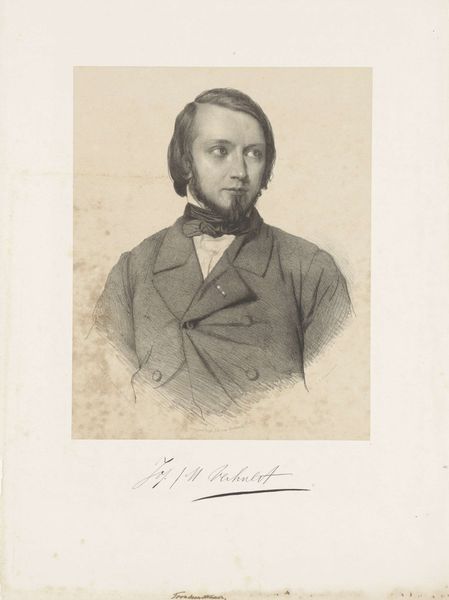 Curator: This drawing presents us with Dirk Jurriaan Sluyter's "Portret van de dichter en predikant Jan Jacob Lodewijk ten Kate," crafted with pencil between 1842 and 1873. Editor: The initial impression is one of profound seriousness, even somberness. The monochrome lends itself to gravity, and the sharp focus on the subject’s face creates a palpable sense of his presence. Curator: Indeed. Sluyter was working in a period defined by emerging industrialization and rapid social change in the Netherlands. Understanding the cultural weight of representing religious figures within the broader political shifts of the era is essential here. Editor: The artist's medium speaks volumes; the delicacy of the pencil allows a nuanced rendering of detail. Note how light and shadow shape Ten Kate's face, conveying his inner thoughts, and perhaps his religious convictions, through symbolic representation. Curator: Precisely, and beyond religious convictions, we have a glimpse of Ten Kate’s social standing. We are confronted with the role class plays in visibility, asking ourselves how identities were not just represented but carefully constructed within social and political hierarchies. Editor: The gaze certainly conveys a strong sense of moral authority, which would align with his roles as both poet and preacher. And yet, it invites interpretation. The portrait itself operates like an emblem of societal and intellectual ideals. The precise depiction speaks to a culture obsessed with capturing likeness but also imbued with meaning. Curator: I agree, the very act of portraying someone carries a weight. The artwork also begs to know, whose stories and whose images were valued, or overlooked in Dutch society at that time? Editor: The piece prompts consideration of both outward representation and internal character, inviting reflection upon not just Jan Jacob Lodewijk ten Kate's personal story but the symbolic representation of Dutch society. Curator: And reminds us to engage with those silent historical narratives—the ones still demanding acknowledgement within the canvas of today's social dialogue.