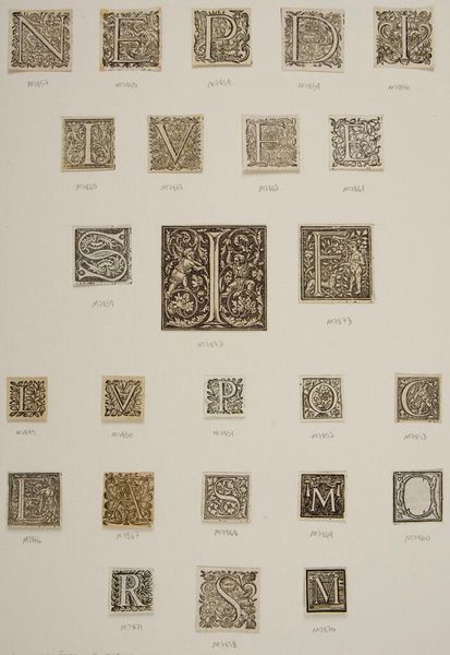 Curator: Here we have "Letter I (?)," an anonymous work held at the Harvard Art Museums. The piece presents a grid of intricately detailed squares, each seemingly illustrating a unique scene. Editor: The immediate impression? It feels like peering into a collection of tiny, self-contained worlds, each whispering a different story. Curator: Indeed. Observe the composition within each square. Note the dense linework and the way figures are integrated into the framework of the letter itself. Editor: It’s like the letter is both container and content, the boundary and the story. Makes you wonder what larger narrative they were meant to be part of. Curator: Given the period and the style, it’s probable these initials were intended for illuminated manuscripts, each letter a visual key to unlocking the text. Editor: A beautiful thought, really. Each carefully wrought world offering a glimpse into a grander tale. Almost like dreaming, isn't it? Curator: Perhaps. It invites speculation on the artist's intent and the interplay between form and function inherent in such works. Editor: Well, I'm glad these little worlds found a home, a new context. They might be fragments, but they're fragments full of life.