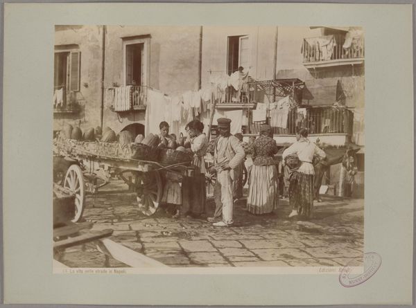 Curator: This is Félix Bonfils's photograph, "A Public Place in Old Cairo." It's a view of daily life. Editor: It feels so muted, almost dreamlike. The light is soft, giving a sense of timelessness. Curator: Bonfils was part of a wave of photographers documenting the Middle East for European consumption. Think about the colonial gaze embedded in the production and circulation of these images. Editor: I'm struck by the composition, how the archway on the right frames a figure in white, drawing the eye through the crowded scene. Curator: Consider the labor involved. The subjects, the photographer, the printers, and the consumers were all part of a complex system of image production. Editor: It really does invite contemplation, a glimpse into another world structured by visual elements. Curator: Absolutely, and by layers of socio-economic relationships. Editor: Food for thought indeed.