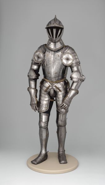 This imposing suit of armor was crafted by Heilig Jörg, sometime between the late 15th and early 16th centuries. It embodies the cultural and psychological weight of the era. The most striking symbol here is the very form of the armor itself. The steel encasement echoes earlier protective deities, like the Greek god Hephaestus' forging of Achilles' shield in the "Iliad." This protective layer, meant to defend against physical threats, is reminiscent of how ancient cultures employed shields. The roundels on the shoulders, for example, are similar to symbolic solar discs, which were talismans of divine protection. We see a continuation of these forms across cultures, each society imbuing them with their own unique meaning. Think of the emotional resonance armor carries. It stirs deep-seated feelings of protection, strength, and even fear. It represents humanity's enduring quest for safety and dominance, a quest that transcends time and culture.