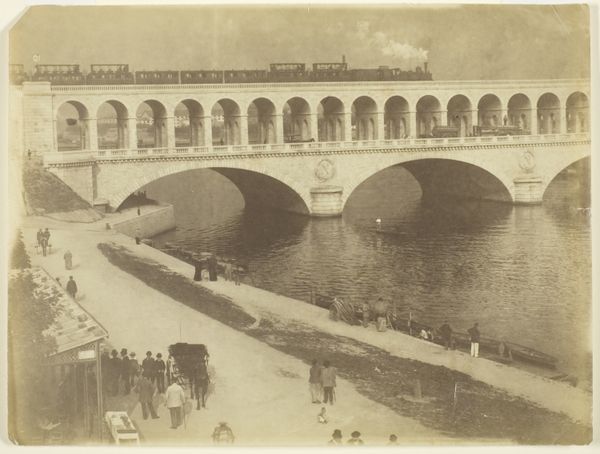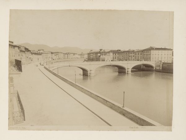 Curator: Looking at this image, I feel an overwhelming sense of quiet observation. Like stepping back in time, or watching a scene unfold from behind a veil. Editor: Precisely! What we're viewing is an albumen print dating from around 1865 to 1890. It's entitled “View of a street along the banks of the Arno in Florence” and it’s attributed to Edizione Brogi. You know, these prints were immensely popular. Curator: Ah, Florence! It certainly captures a lost elegance, a slower rhythm. It feels cinematic almost, like the opening shot of an Italian melodrama. Editor: Yes, exactly. The albumen process renders a softness, and the photographer frames the scene to accentuate the depth, inviting the viewer into the street. But this type of image also speaks volumes about the emerging tourist industry and the construction of "ideal" views that catered to visitor expectations. It became about selling an idealized Florence, frozen in time. Curator: It does have that carefully posed quality. Still, it makes you wonder about those tiny figures walking along the Arno. What were they thinking? Where were they going? Were they in love, perhaps, or deeply worried? I see those shadows lengthen, and a whole unspoken drama starts unfolding in my head. Editor: Right. Think about who would have consumed this image. Primarily middle-class tourists wanting to document and remember their Grand Tour. Brogi and other firms produced these kinds of prints at scale and often presented them in albums – visual souvenirs ready for the parlor back home. They solidify certain romantic visions, they shape cultural memory and experience. Curator: Shaping visions… it’s powerful. It does raise a question – how much of what we consider "historical truth" is just carefully curated imagery? I look at this beautiful Florentine street, and wonder about the messier realities hidden just beyond the frame. Editor: Indeed, this seemingly benign cityscape reveals a carefully managed intersection of commerce, culture, and power. It is a picturesque fragment of a much more complex past. Curator: Thanks, it really invites us to not only gaze but also to question and consider. Editor: A pleasure. Let’s move on, shall we? There’s much more to see, and question.