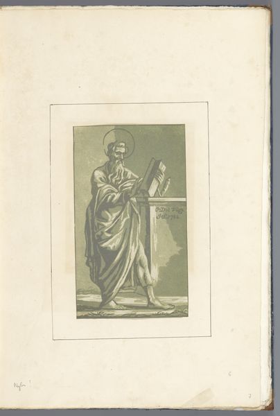 Editor: Here we have "Fotoreproductie van een gravure, voorstellende de Kracht," a reproduction of an engraving representing "Strength," created before 1869, currently housed in the Rijksmuseum. I'm immediately struck by how neoclassical it feels; the figure almost seems to be emerging from the architecture. What do you notice about its formal qualities? Curator: The image compels attention through its calculated orchestration of line and form. Observe how the engraver employs precise, parallel lines to sculpt the figure and delineate the architectural niche, crafting a tactile experience through purely visual means. Editor: It's interesting how the lines create depth and shadow. Are there specific compositional techniques that stand out to you? Curator: Indeed. Note the strategic placement of the figure relative to the pillar and niche. This interplay crafts a balanced yet dynamic composition, the draping fabric echoing the curves of the archway, further harmonizing the subject with its environment. This is academic formalism at its best. Editor: The symmetry definitely lends the image a sense of stability. Would you agree that the composition amplifies the theme of strength? Curator: Undoubtedly. The formal choices directly reflect and enhance the conceptual essence of 'strength.' The rigid lines of the architecture contrasted with the fluid lines of the draped clothing show restraint and latent energy, both aspects of what it means to be strong. What are your impressions of that interplay? Editor: That contrast hadn’t struck me before, but I see it now! It almost feels like she is channeling the strength of the column. Thanks, I feel like I understand this piece a lot better now. Curator: The piece reminds us that visual art presents more than what the eye can see on the surface; it speaks in a language of structure, form and carefully considered elements. Editor: Yes, I think I'll pay more attention to that from now on.