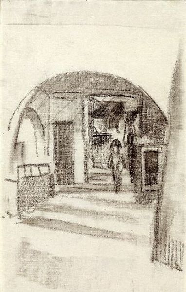 Editor: This is Nicholas Roerich's "Scenery sketch for Mussorgsky's opera 'Khovanshchina'," created in 1919. It’s a pencil drawing, and I’m struck by its starkness. It feels very raw, almost like an immediate record of an idea. What do you see in this piece? Curator: It’s a study in the materiality of theatre design. Roerich isn't just representing architecture; he’s exploring the processes of creating atmosphere for an opera. Consider the raw pencil lines: they’re not trying to hide their hand-made quality, are they? Think about how the sketched lines speak to a production process, revealing the labour and decision-making in creating a stage set. Editor: I see what you mean about the handmade quality. The sketchiness makes it feel very process-oriented. Curator: Exactly! And we must consider that 'Khovanshchina' focuses on societal upheaval. Does Roerich's skeletal rendition hint at instability or revolution even in set design? The rapid sketch becomes more than just prep; it embodies cultural tensions within Russia, using accessible material to question boundaries between "high art" opera and real world experiences of material limitations. Editor: That's interesting - linking the material quality to the opera’s themes. It gives new depth. Curator: How do these sparse materials differ from say, painting a grand historical scene? The material choice challenges expected opulence of opera production; inviting discourse around resource use itself, especially important following the end of WWI and Russia's tumultuous changes. Editor: I never thought about it that way - the material itself making a statement. It really changes how I understand the piece. Curator: Indeed. It’s a valuable lens: looking beyond representation to explore how artistic production reveals social and cultural values through the work itself.
