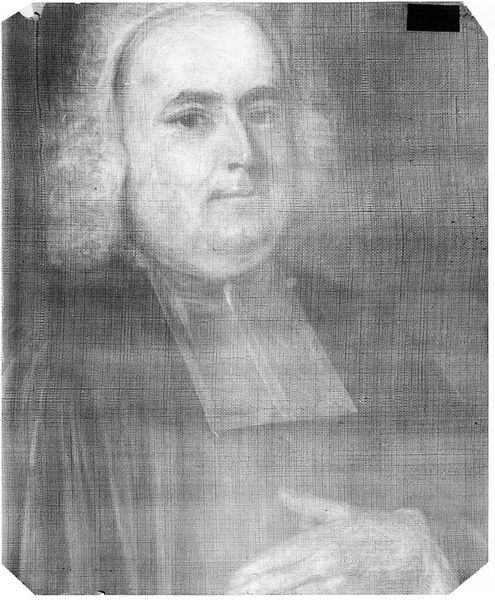 Curator: This is an X-radiograph of "Thomas Cushing," originally painted by Joseph Badger. The film itself measures 14 by 17 inches. It's held here at the Harvard Art Museums. Editor: Fascinating! It gives the impression of looking beneath the surface, both literally and metaphorically. The texture of the canvas is so prominent. Curator: Indeed. It allows us to analyze Badger's technique, seeing the underpainting and structure supporting the visible image. It also prompts us to consider the cultural value placed on portraiture and legacy in the 18th century. Editor: And considering materials—the pigments used, the canvas weave—it makes me think about trade routes, labor, and the very tangible construction of this image of power. Curator: Precisely. The X-ray reveals not just the artist's hand, but the socio-economic underpinnings of its creation. Editor: It definitely gives a fresh perspective on portraiture. Curator: Yes, it moves us away from a simple representation to a complex story of making and meaning.