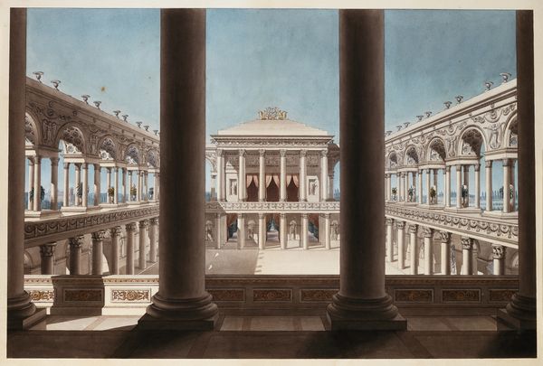 Editor: This photograph captures the Apostolic Palace. Bramante’s design, seen here through a camera's lens, feels...grand, but also slightly intimidating with its scale. So many columns! What stands out to you? Curator: Oh, I’m transported by this. It is indeed a testament to Neoclassical ideals, aspiring to achieve a perfect balance between monumentality and harmony, echoing the glory of antiquity. Bramante, in a way, isn't just building; he’s composing music with stone. The rhythmic cadence of the columns, the play of light and shadow...it evokes a spiritual experience for me. I would even argue a transcendent moment captured! Do you get a sense of that as well? Editor: I can definitely see the rhythm you’re talking about. But I keep getting caught up on the stark contrast between the detail in the columns and the pretty bare façade of the building itself. Does that make sense? Curator: Absolutely. It’s a dance between opulence and restraint, common in classical architecture, don't you think? Think of it as a whisper and a shout – the columns are the pronouncements, the building behind them offering a dignified, subtle response. Almost as if the design challenges you to think about space and scale in architecture! Editor: That’s a really interesting perspective. I’ll never look at a building the same way. Curator: Architecture really changes the way we think about history! Editor: Definitely! I learned something new today.