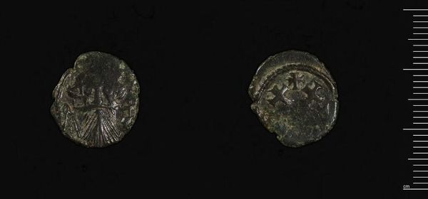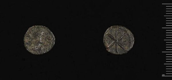 Editor: So, this is a coin of Ptolemy III of Egypt from Kyrenaica. It's incredibly small, but it's got a weight of 3.52 grams. It's just incredible to think how much history is literally pressed into these tiny surfaces. What do you see in this piece that jumps out at you? Curator: It’s like holding a whisper from the past, isn’t it? I see the ghost of an empire. Think of the hands this coin passed through – merchants, soldiers, lovers perhaps. The wear and tear tells its own story, like wrinkles on an ancient face, each scratch a memory. Does it speak to you of power, perhaps? Editor: Definitely power. But also resilience, I think. It's survived so long, and is still here in the Harvard Art Museums. I hadn’t thought about it that way before. Curator: Exactly! These objects are more than just artifacts, they're echoes. And who knows what secrets they'll whisper next?